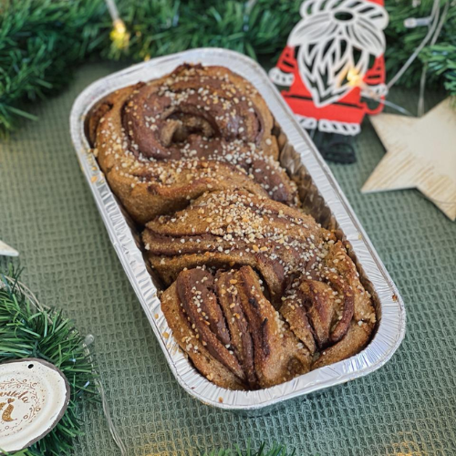 Trenza 100%integral con pasta de maní + cacao (contiene leche sin lactosa)